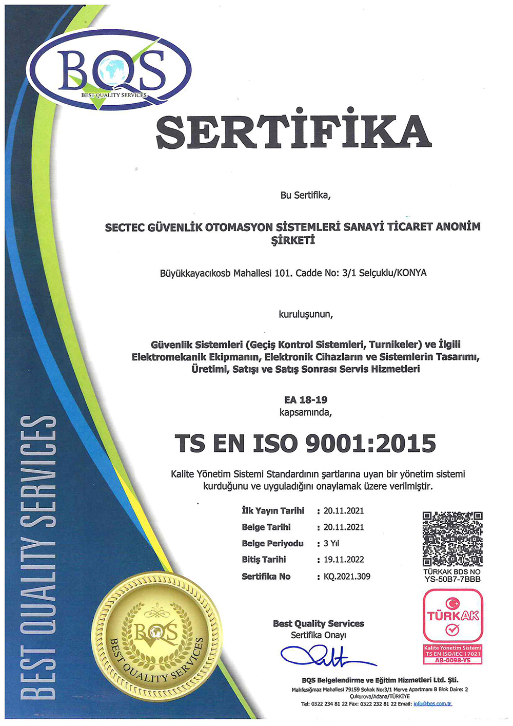 Kalite Yönetim Standartları Uygunluk Belgesi